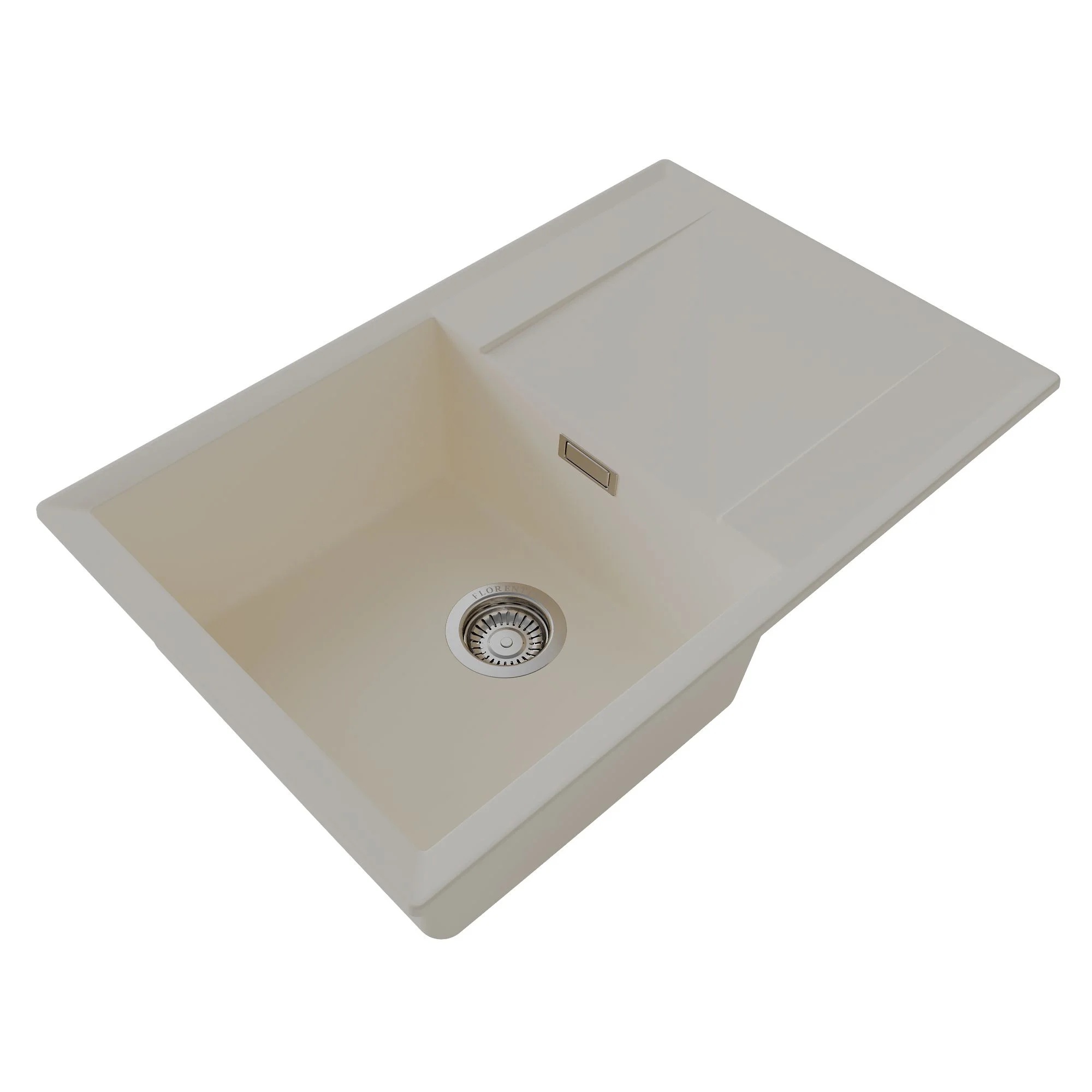 Прямоугольная мойка с большой чашей для кухонного шкафа 50 см. Материал — кварцевый композит. Предусмотрены доп. отверстия для установки аксессуаров. Мойка реверсивная.