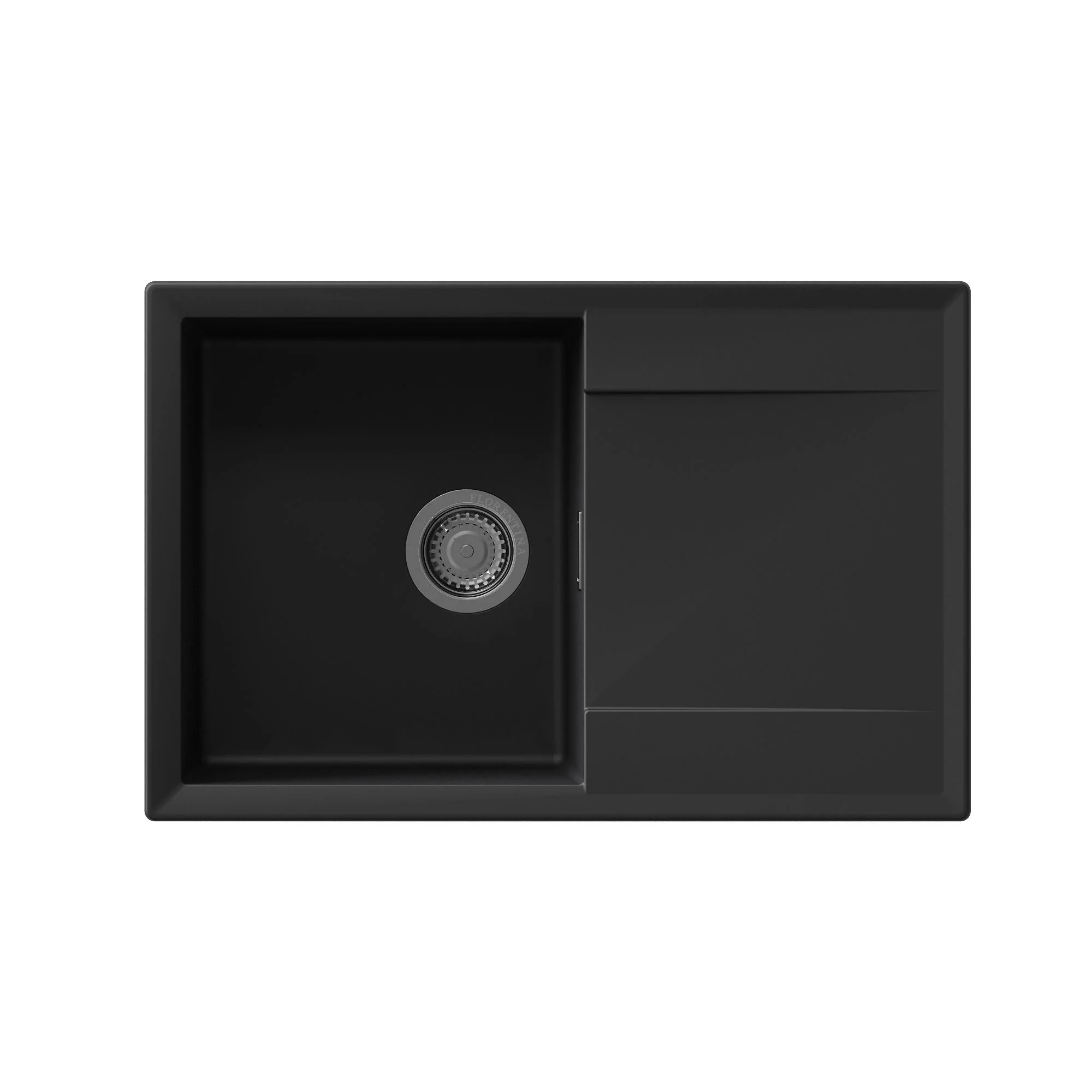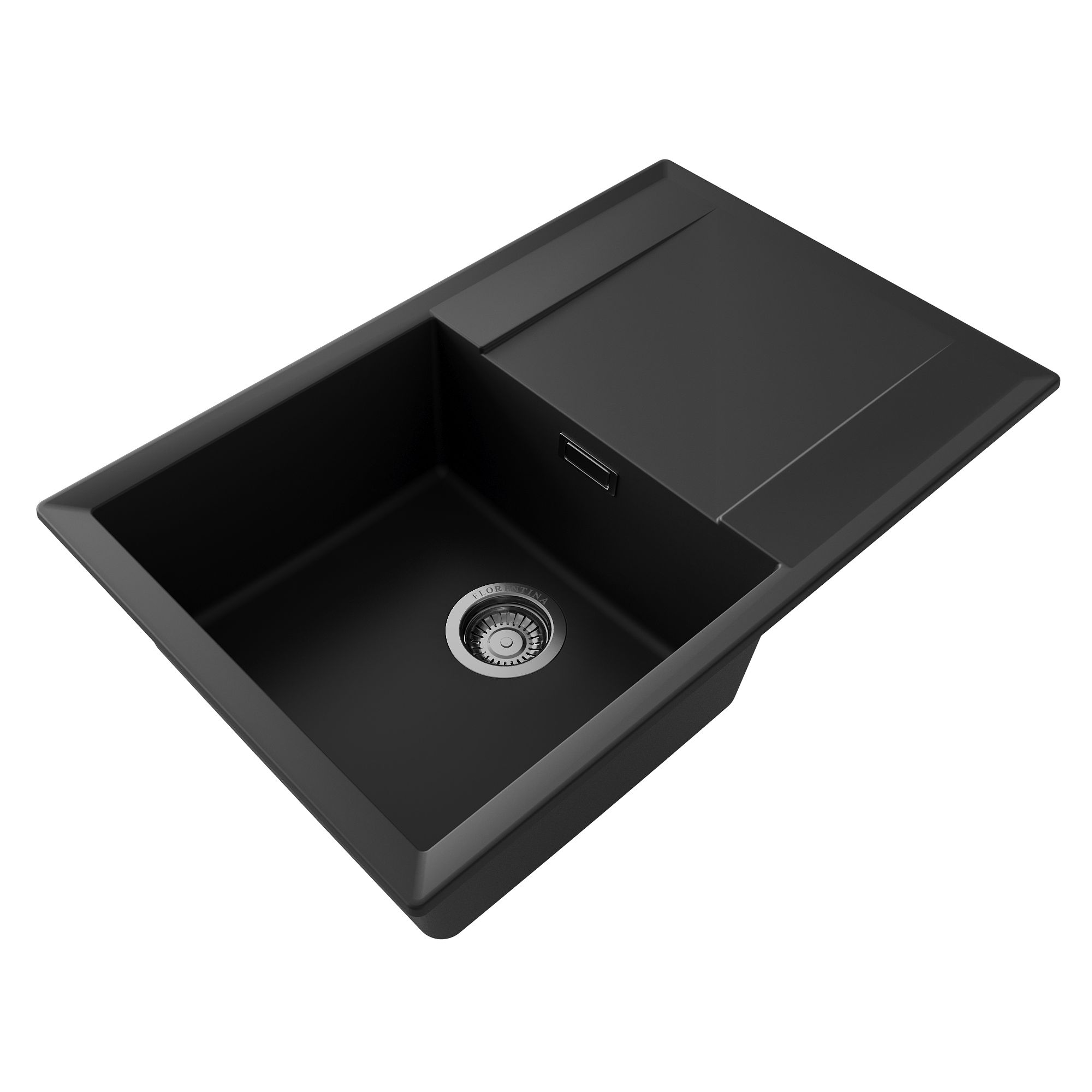 Прямоугольная мойка с большой чашей для кухонного шкафа 50 см. Материал — кварцевый композит. Предусмотрены доп. отверстия для установки аксессуаров. Мойка реверсивная.