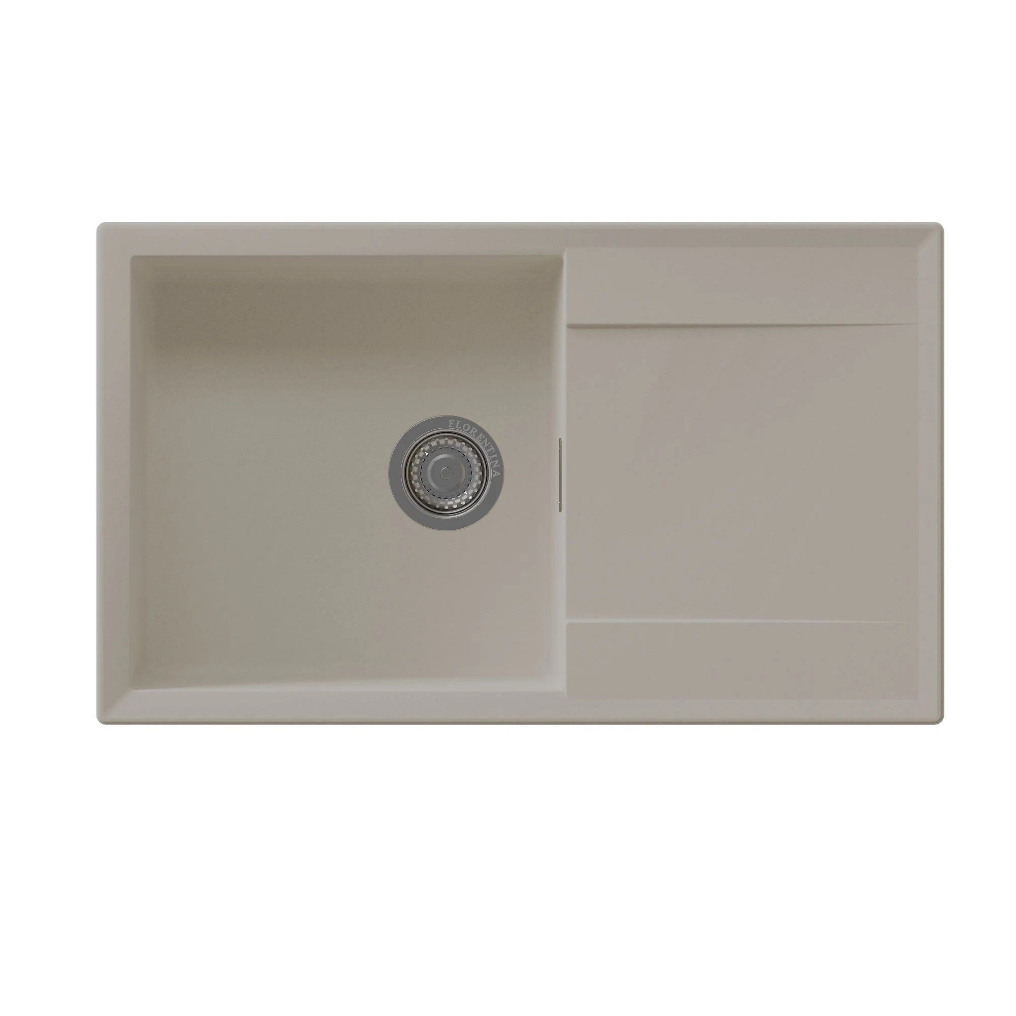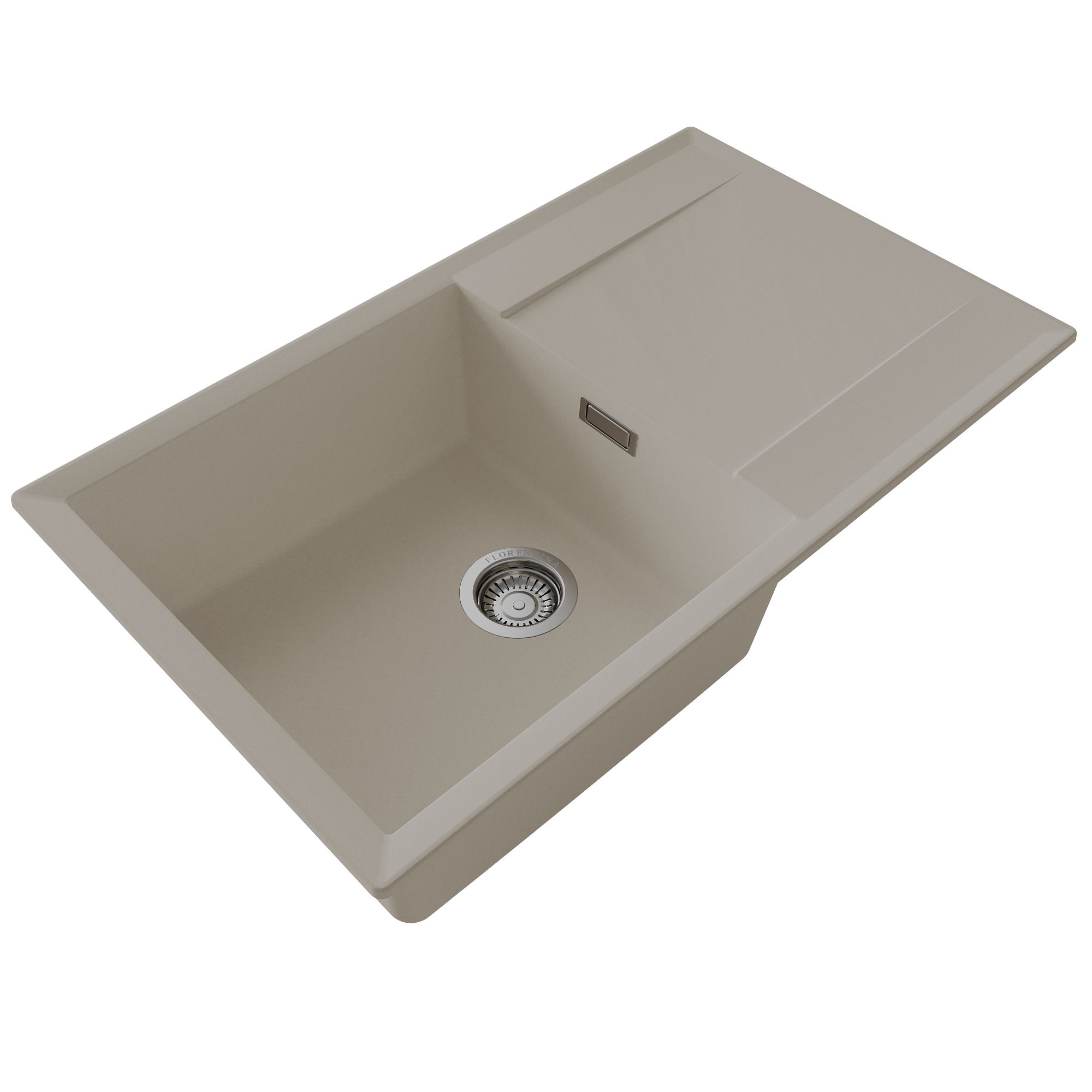 Прямоугольная мойка с большой чашей для кухонного шкафа 60 см. Материал — кварцевый композит. Предусмотрены доп. отверстия для установки аксессуаров. Мойка реверсивная.