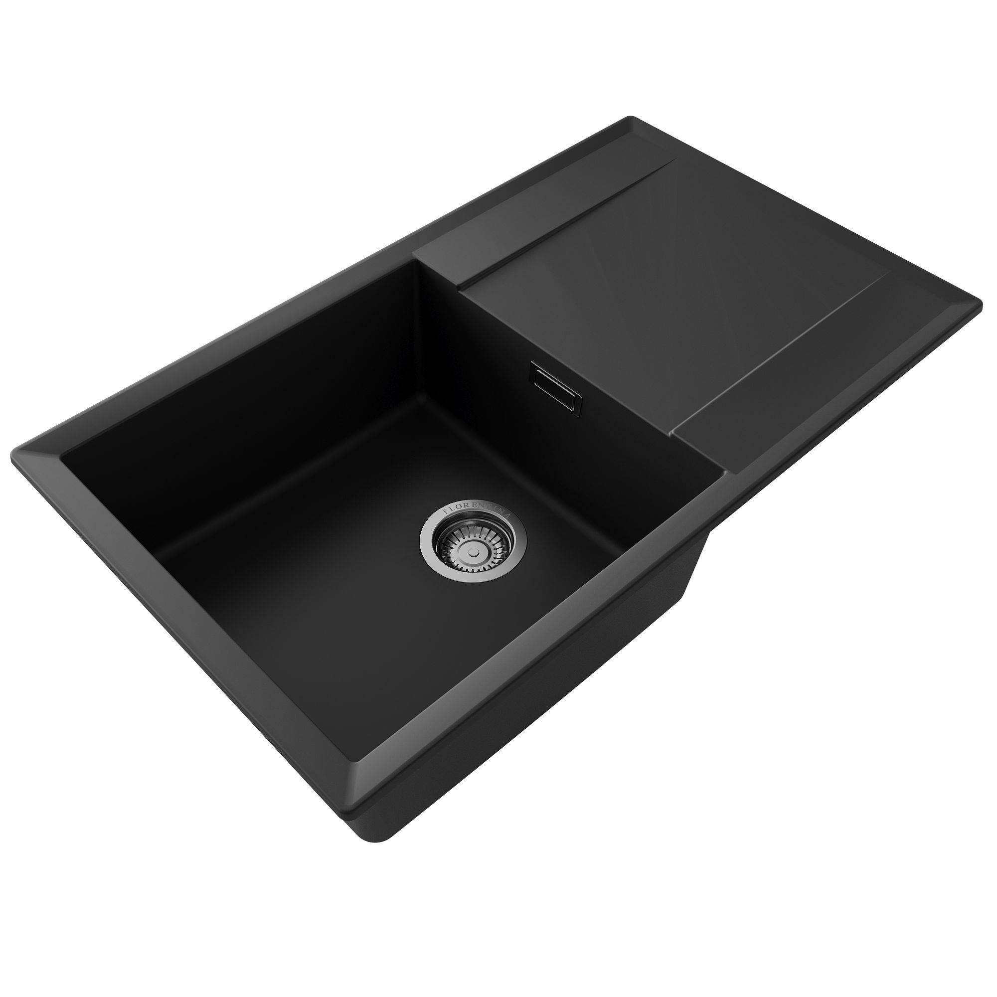 Прямоугольная мойка с большой чашей для кухонного шкафа 60 см. Материал — кварцевый композит. Предусмотрены доп. отверстия для установки аксессуаров. Мойка реверсивная.