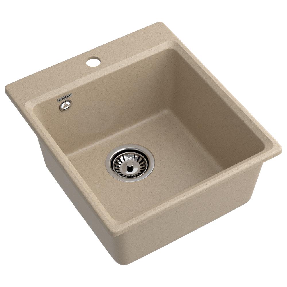 Кухонная мойка GranFest GF-LV-420, песочный. Для кухонного шкафа 45 см. Материал — искусственный мрамор. Производство: Россия. Гарантийный срок: 5 лет.