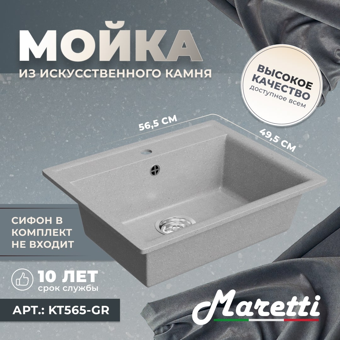 Односекционная реверсивная мойка Maretti KT565 — классическая модель с отверстием под смеситель. Её можно установить в шкаф шириной от 60 см, что позволяет интегрировать мойку в стандартную столешницу такой же ширины. Это даёт большие возможности при планировании дизайна кухни.