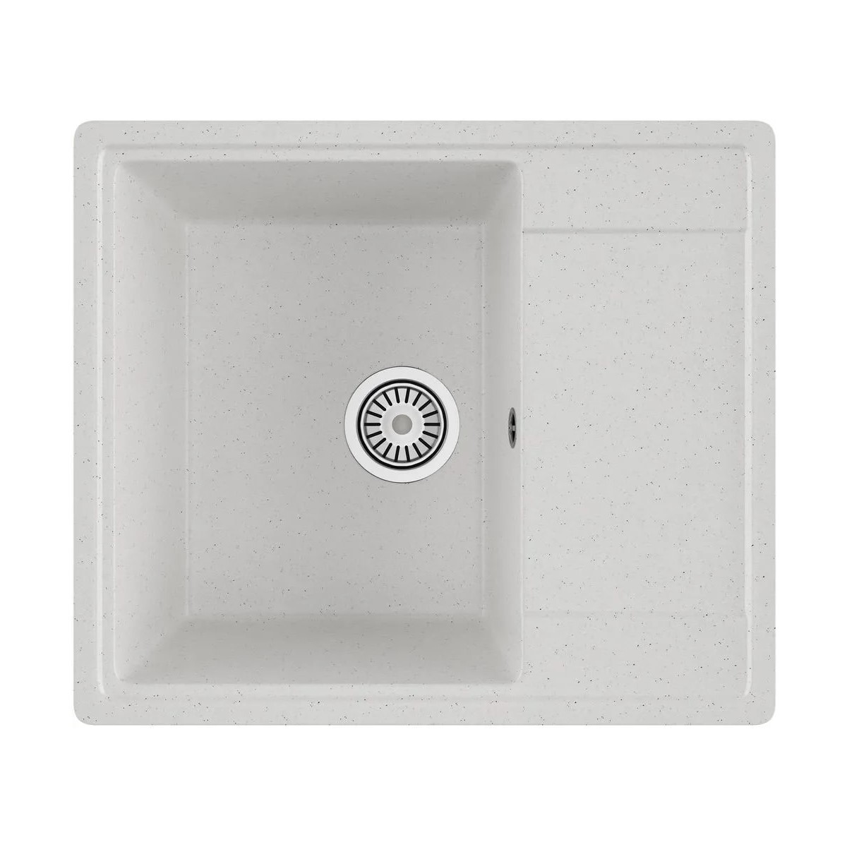 Мойка изготовлена из искусственного камня, который представляет собой композит натурального мрамора и связующих смол. Благодаря этому материалу, шум от падающей воды становится значительно тише.