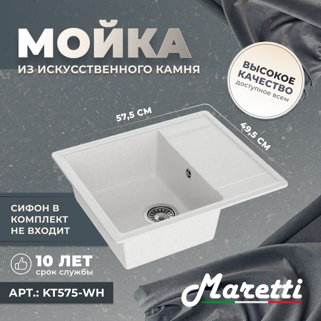 Односекционная реверсивная мойка Maretti Kitchen 575 с плоским крылом идеально подойдёт для небольшой кухни. Крыло можно расположить как справа, так и слева. Мойка не имеет готовых отверстий под смеситель.