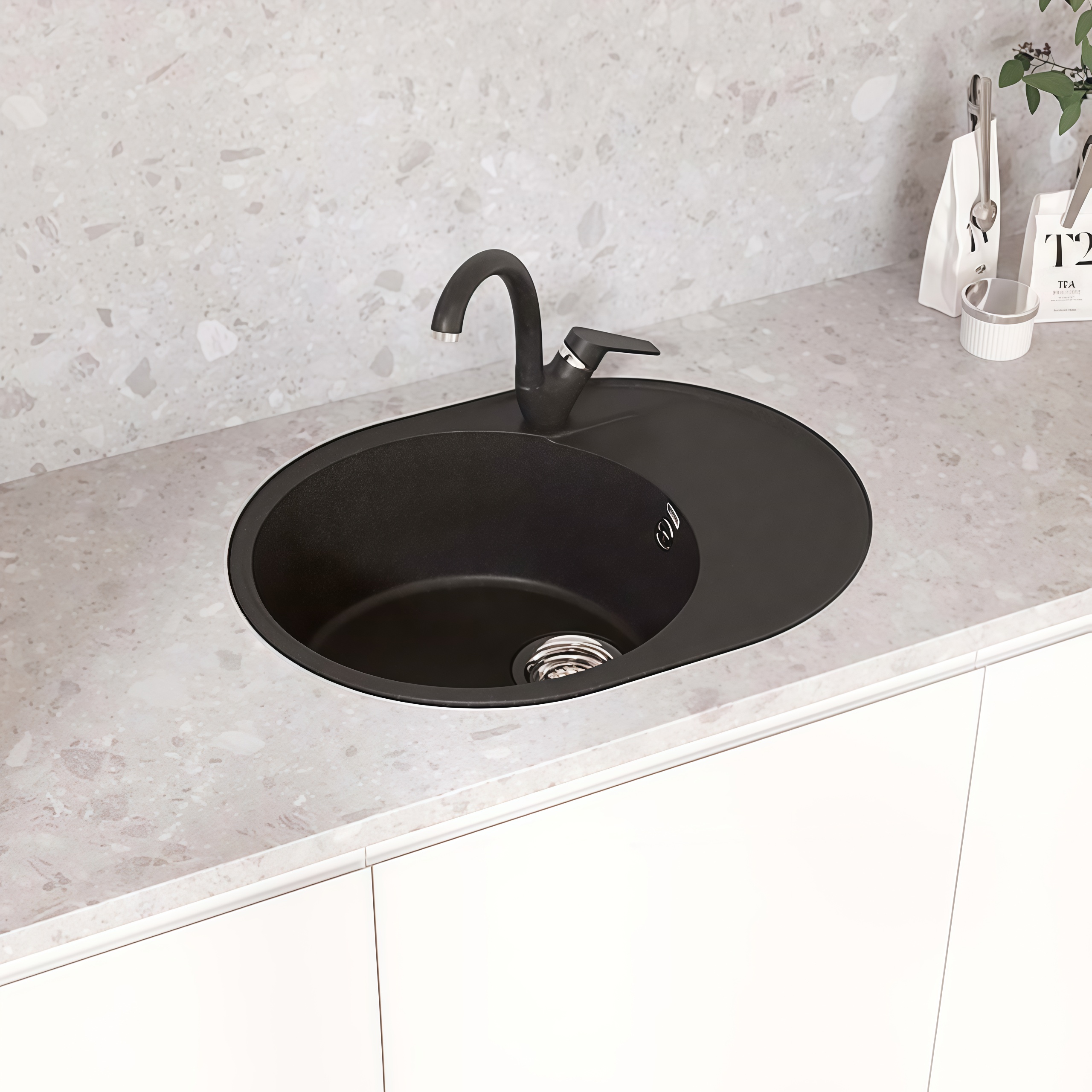 Овальная мойка Maretti Kitchen 610 KT610-BL черного цвета — оптимальное решение для компактной кухни. Модель оснащена круглой чашей и плоским крылом, которое можно разместить слева или справа (реверсивная конструкция).