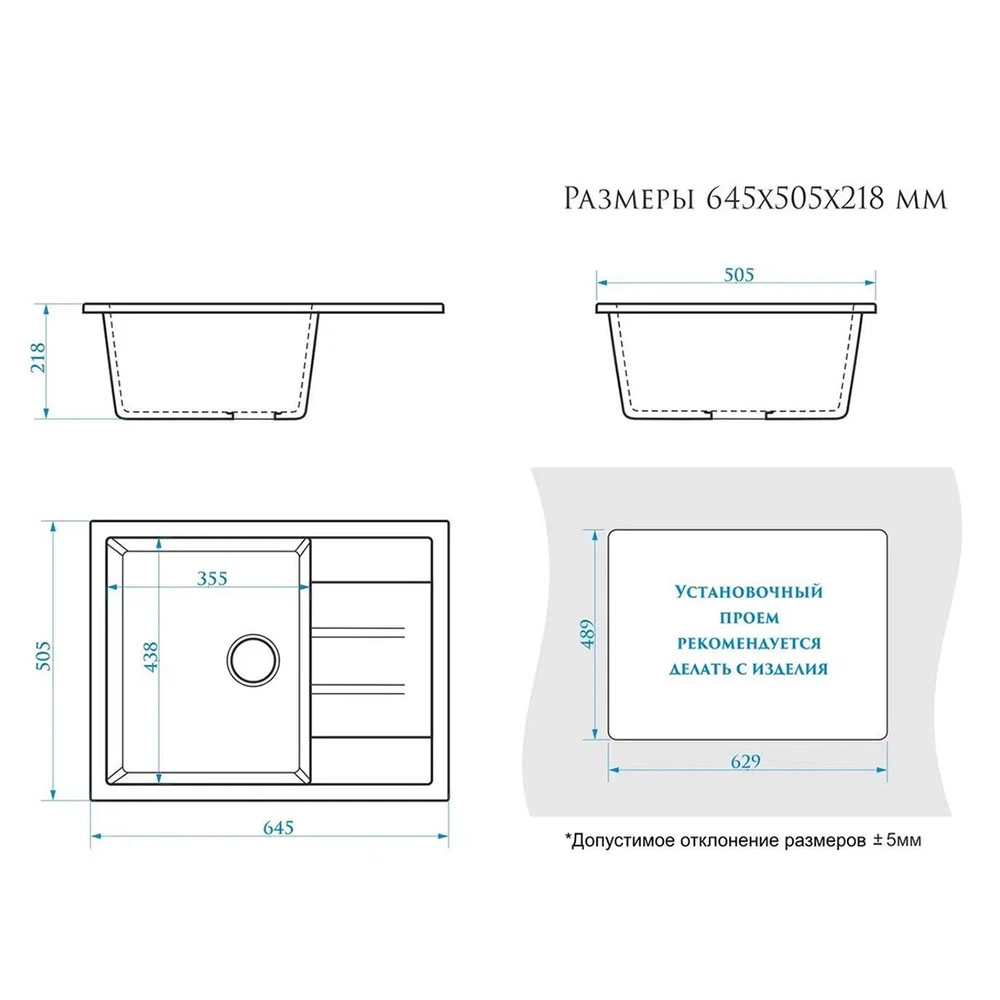 Кухонная мойка Maretti Kitchen MR645-BL, черный. Размер мойки: 64,5*50,5*21,8 см. Форма: прямоугольная. Крыло: да. Минимальная ширина кухонного шкафа: 45.