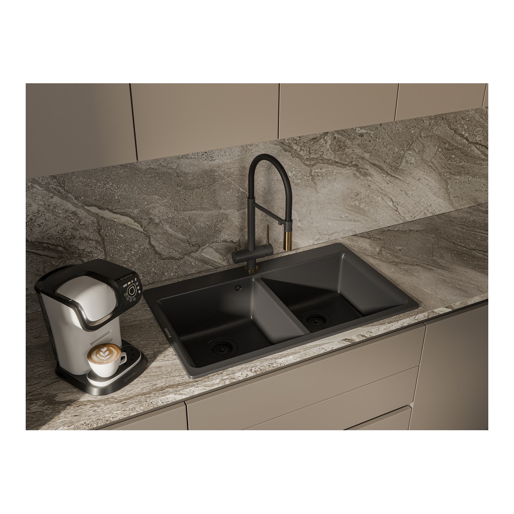 Кухонная мойка Rivelato AXEL X-90-2D, антрацит. Для кухонного шкафа 90 см. Материал — кварцевый композит. Производство: Италия. Гарантийный срок: 5 лет.