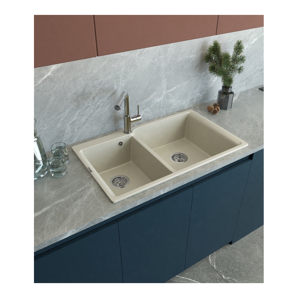 Кухонная мойка Rivelato AXEL X-90D, темно-бежевый. Для кухонного шкафа 90 см. Материал — кварцевый композит. Производство: Италия. Гарантийный срок: 5 лет.