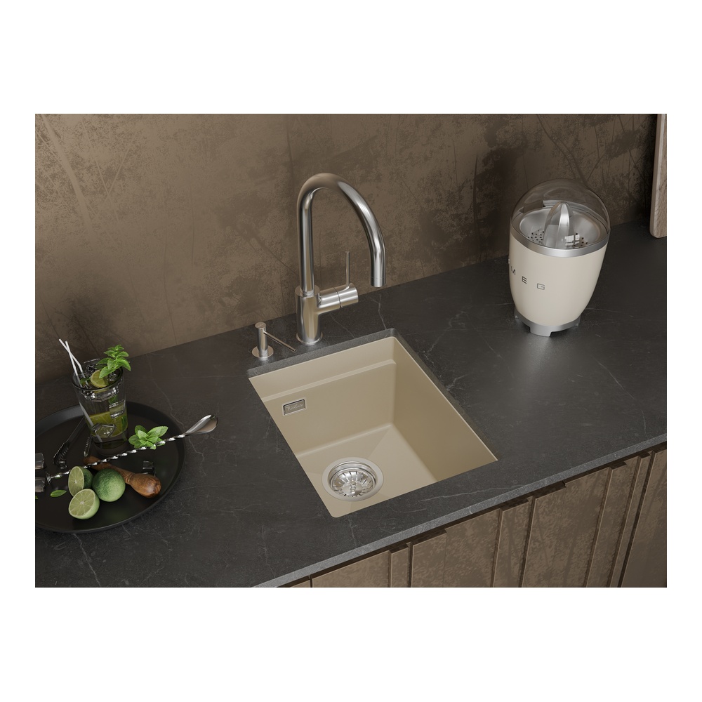 Кухонная мойка Rivelato LINO LN-354, темно-бежевый. Для кухонного шкафа 40 см. Материал — кварцевый композит. Производство: Италия. Гарантийный срок: 5 лет.