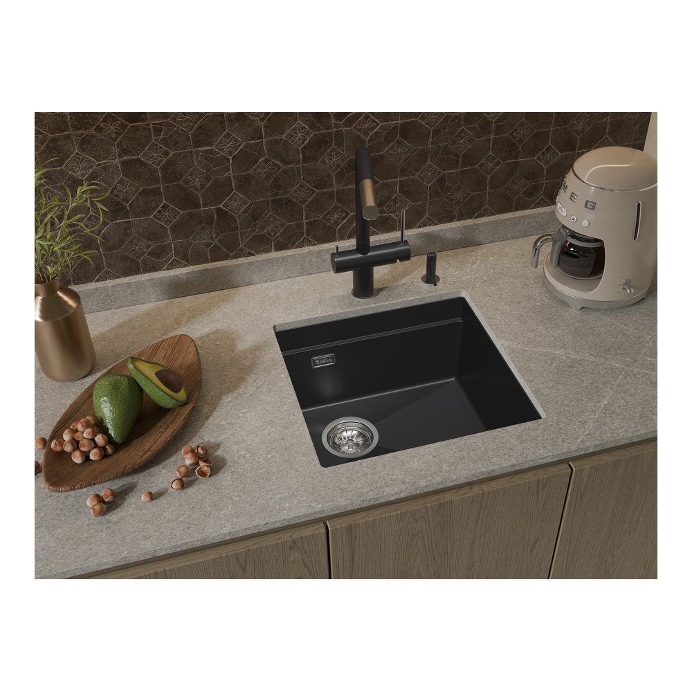 Кухонная мойка Rivelato LINO LN-454-L, антрацит. Для кухонного шкафа 45 см. Материал — кварцевый композит. Производство: Италия. Гарантийный срок: 5 лет.