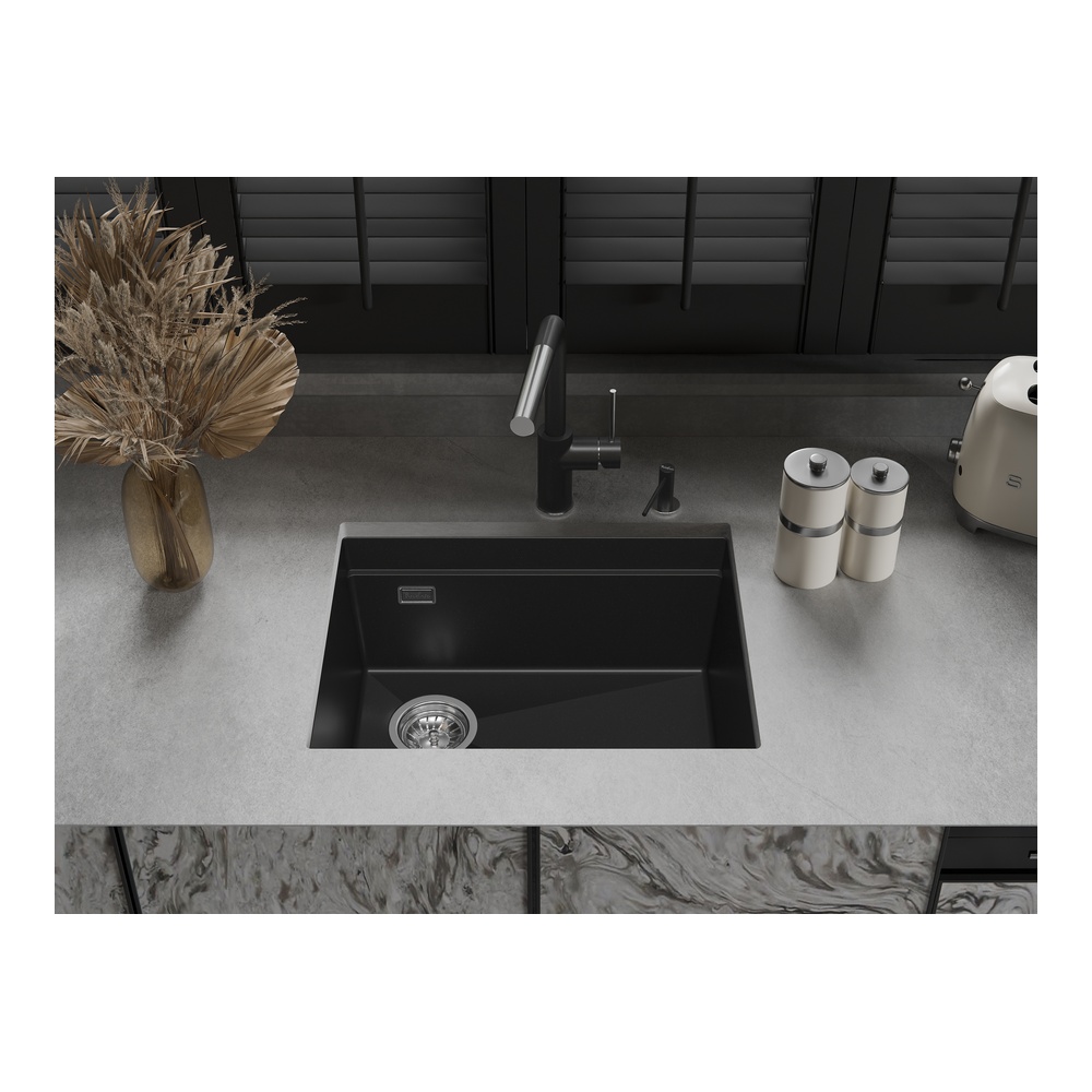 Кухонная мойка Rivelato LINO LN-554-L, черный. Для кухонного шкафа 60 см. Материал — кварцевый композит. Производство: Италия. Гарантийный срок: 5 лет.