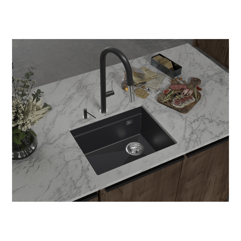 Кухонная мойка Rivelato LINO LN-554-R антрацит. Для кухонного шкафа 60 см. Материал — кварцевый композит. Производство: Италия. Гарантийный срок: 5 лет.