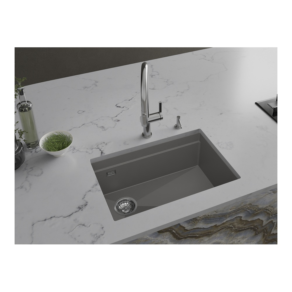 Кухонная мойка Rivelato LINO LN-654-L серый металлик. Для кухонного шкафа 70 см. Материал — кварцевый композит. Производство: Италия. Гарантийный срок: 5 лет.