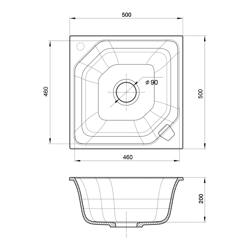Кухонная мойка Rivelato LOCUS LS-50, антрацит. Для кухонного шкафа 60 см. Материал — кварцевый композит. Производство: Италия. Гарантийный срок: 5 лет.