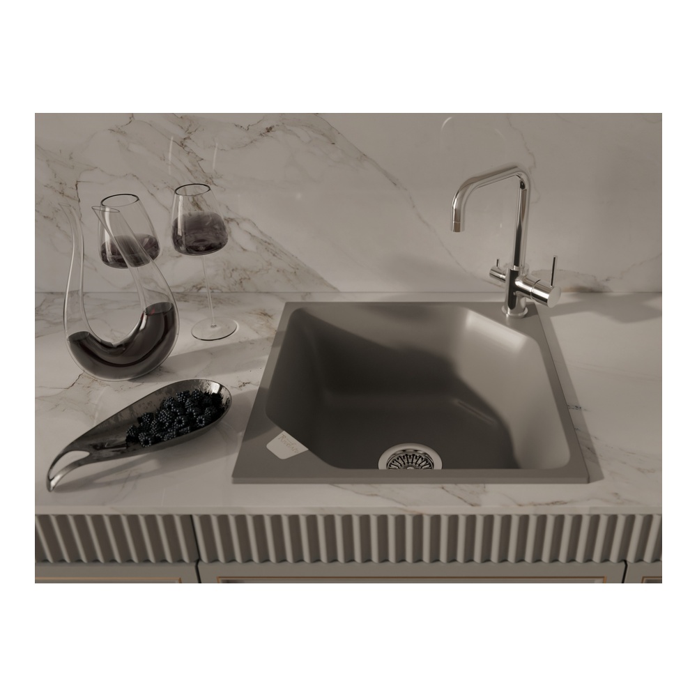 Кухонная мойка Rivelato LOCUS LS-50, серый металлик. Для кухонного шкафа 60 см. Материал — кварцевый композит. Производство: Италия. Гарантийный срок: 5 лет.