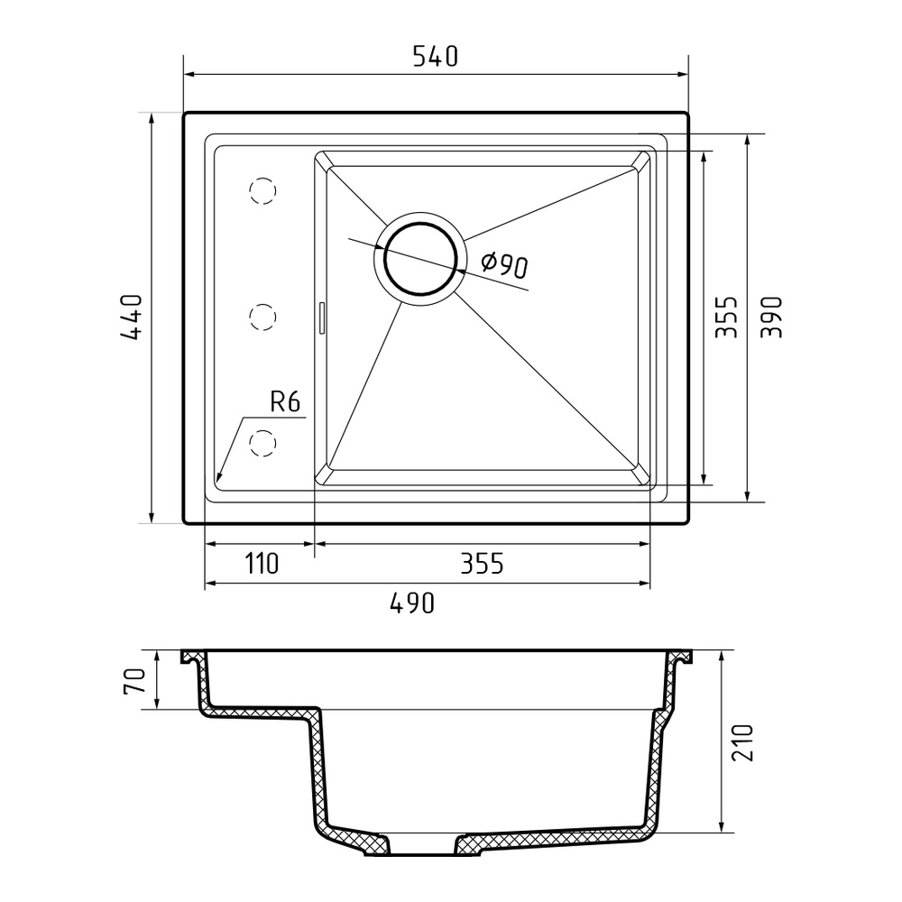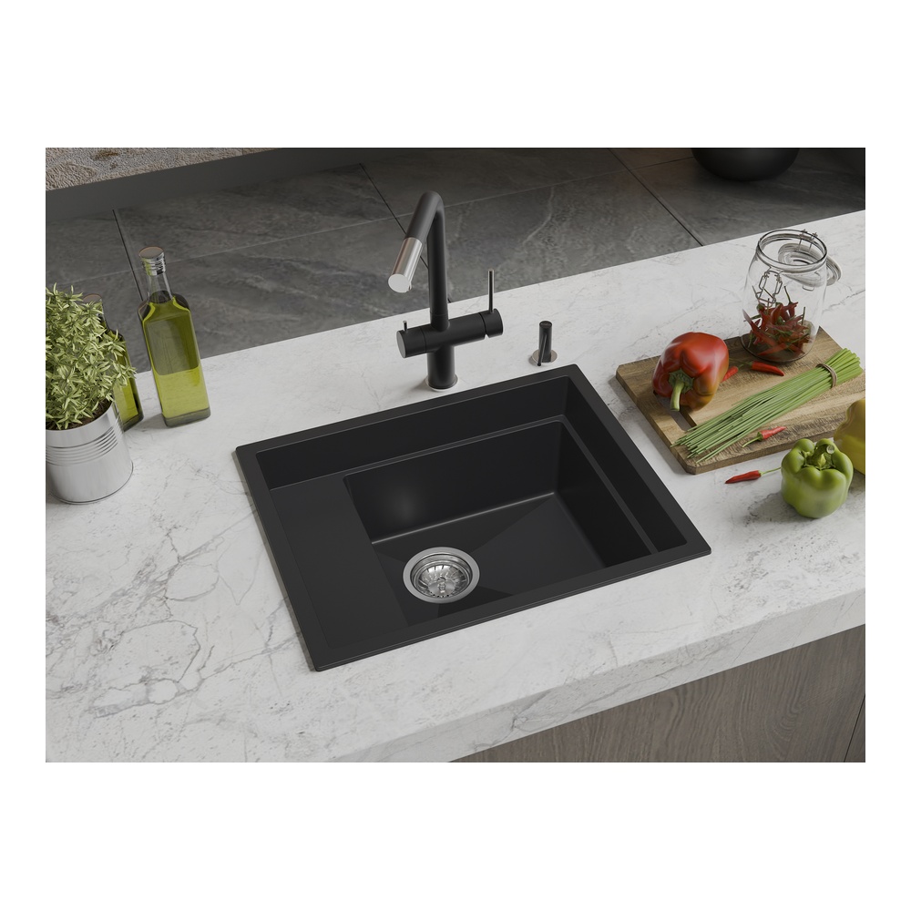 Кухонная мойка Rivelato NOBILE NB-544-L, антрацит. Для кухонного шкафа 60 см. Материал — кварцевый композит. Производство: Италия. Гарантийный срок: 5 лет.