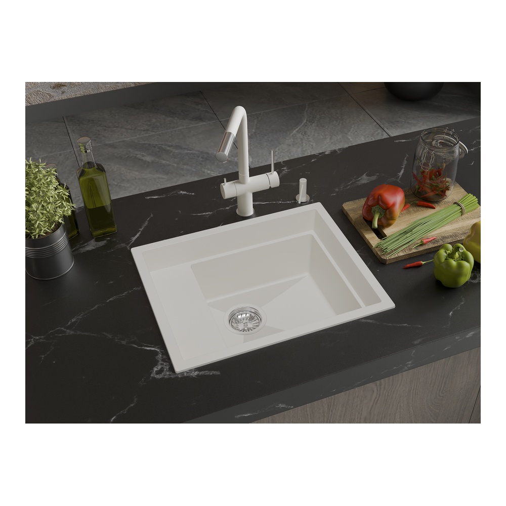 Кухонная мойка Rivelato NOBILE NB-544-L, иней. Для кухонного шкафа 60 см. Материал — кварцевый композит. Производство: Италия. Гарантийный срок: 5 лет.
