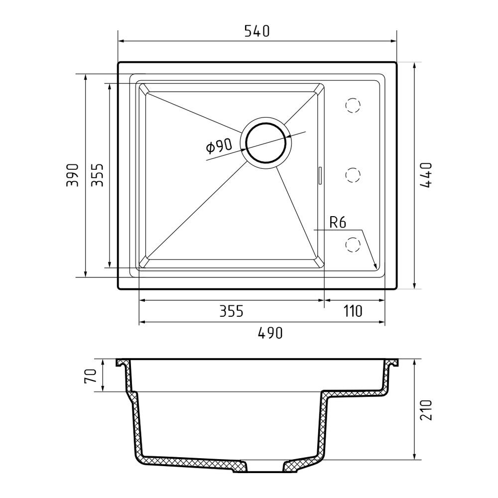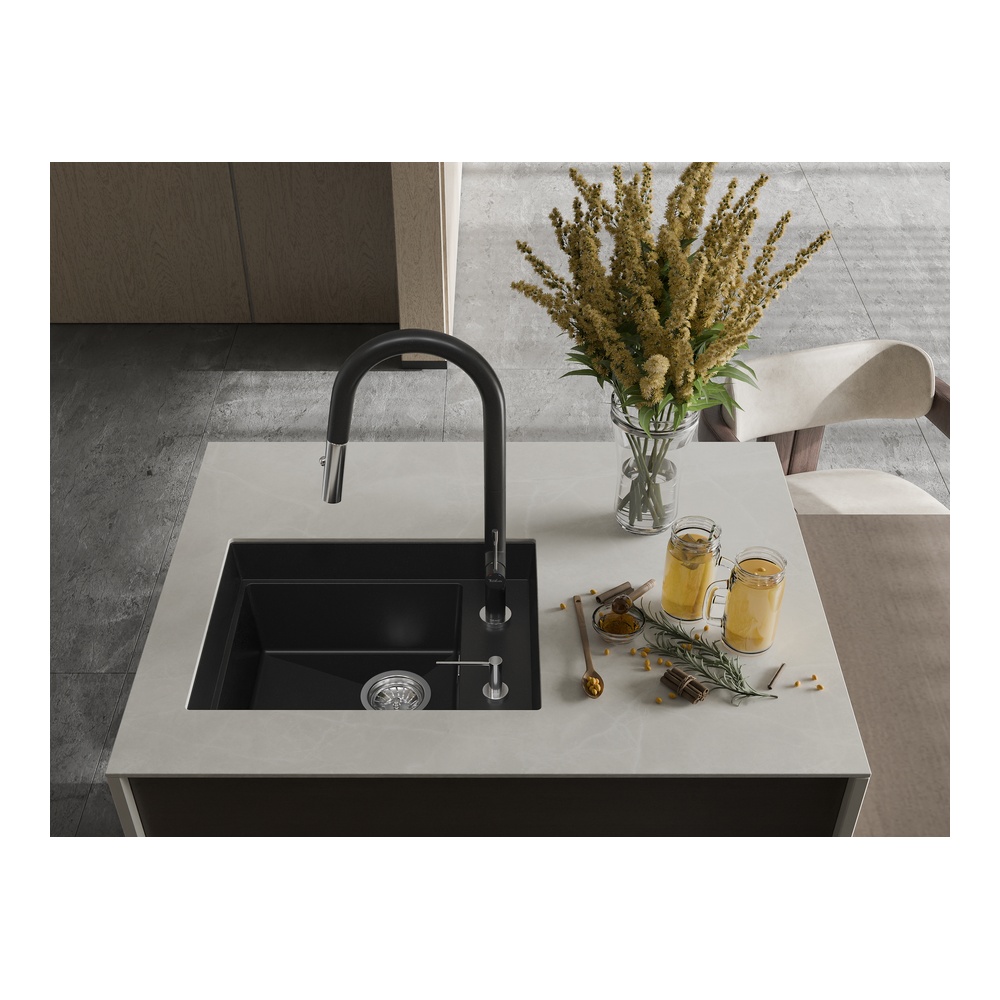 Кухонная мойка Rivelato NOBILE NB-544-R, черный. Для кухонного шкафа 60 см. Материал — кварцевый композит. Производство: Италия. Гарантийный срок: 5 лет.