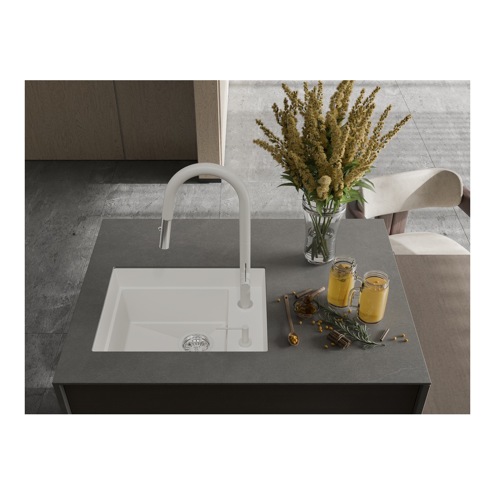 Кухонная мойка Rivelato NOBILE NB-544-R, иней. Для кухонного шкафа 60 см. Материал — кварцевый композит. Производство: Италия. Гарантийный срок: 5 лет.