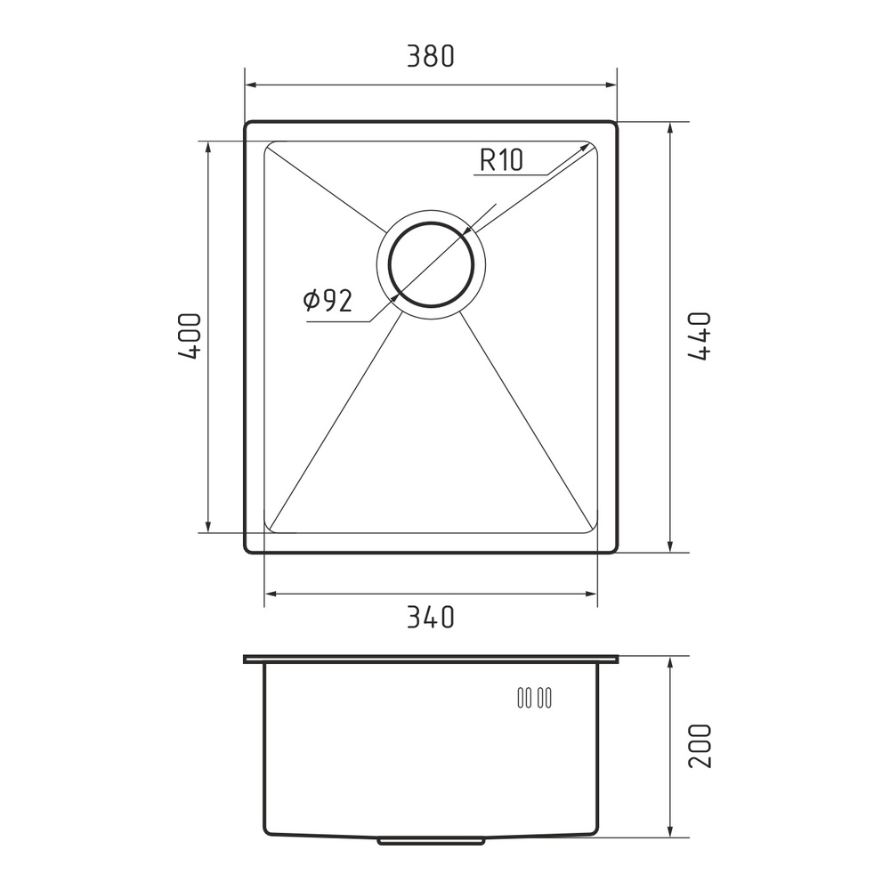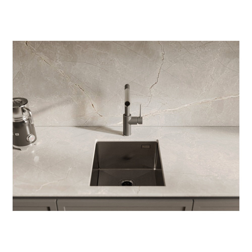 Кухонная мойка Rivelato Rinox 3844 UN PVD, черный. Для кухонного шкафа 40 см. Материал — нержавеющая сталь. Производство: Китай. Гарантийный срок: 5 лет.