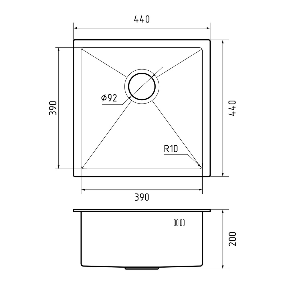 Кухонная мойка Rivelato Rinox 4444 UN, нержавеющая сталь. Для кухонного шкафа 45 см. Материал — нержавеющая сталь. Производство: Китай. Гарантийный срок: 5 лет.