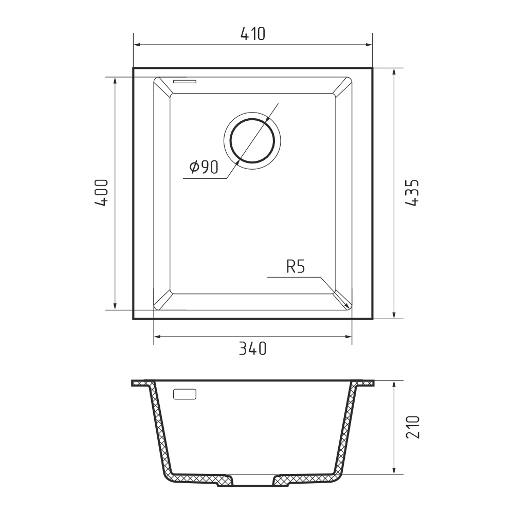 Кухонная мойка Rivelato STRIA SR-4134, коричневый. Для кухонного шкафа 45 см. Материал — кварцевый композит. Производство: Италия. Гарантийный срок: 5 лет.