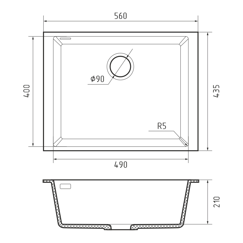 Кухонная мойка Rivelato STRIA SR-5649, темно-серый. Для кухонного шкафа 60 см. Материал — кварцевый композит. Производство: Италия. Гарантийный срок: 5 лет.
