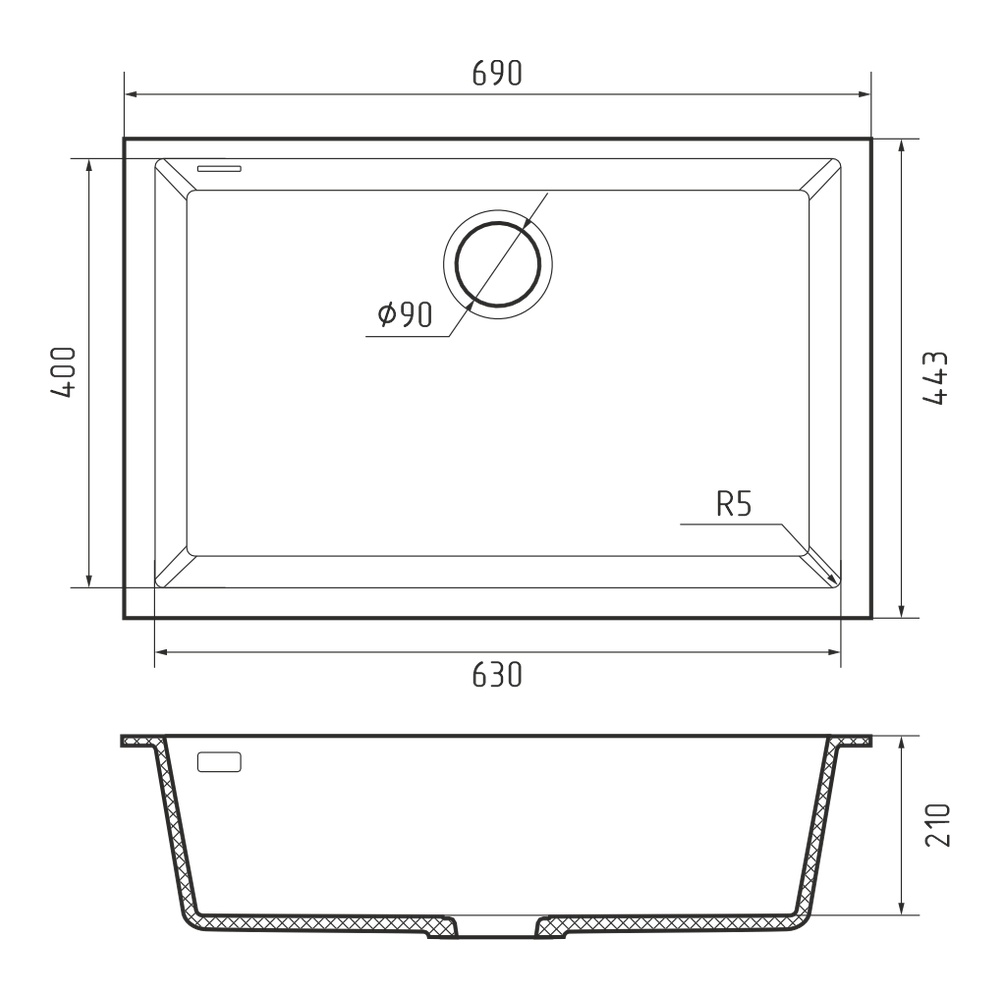 Кухонная мойка Rivelato STRIA SR-6963, черный. Для кухонного шкафа 80 см. Материал — кварцевый композит. Производство: Италия. Гарантийный срок: 5 лет.