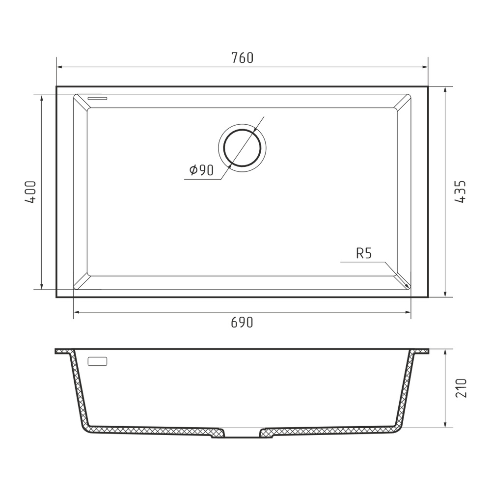 Кухонная мойка Rivelato STRIA SR-7669, коричневый. Для кухонного шкафа 80 см. Материал — кварцевый композит. Производство: Италия. Гарантийный срок: 5 лет.