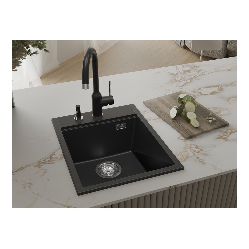 Кухонная мойка Rivelato TESORO TR-405, черный. Для кухонного шкафа 40 см. Материал — кварцевый композит. Производство: Италия. Гарантийный срок: 5 лет.