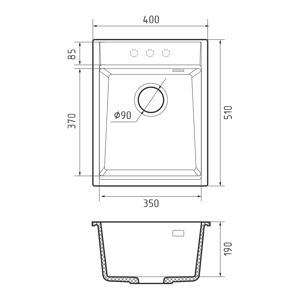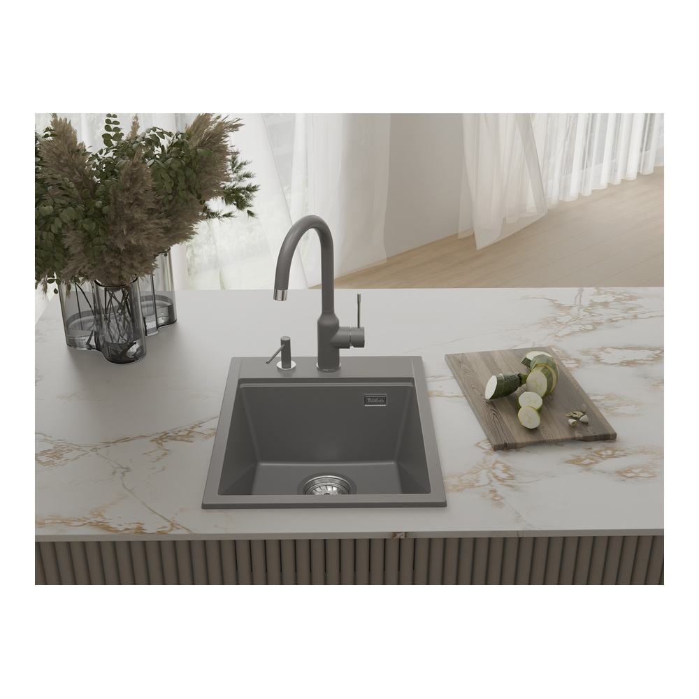 Кухонная мойка Rivelato TESORO TR-405, серый металлик. Для кухонного шкафа 40 см. Материал — кварцевый композит. Производство: Италия. Гарантийный срок: 5 лет.