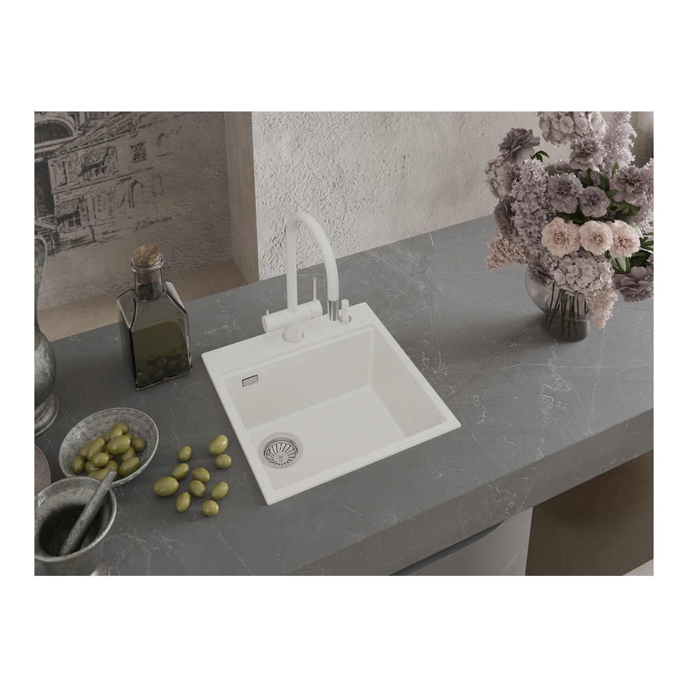 Кухонная мойка Rivelato TESORO TR-505-L, иней. Для кухонного шкафа 50 см. Материал — кварцевый композит. Производство: Италия. Гарантийный срок: 5 лет.