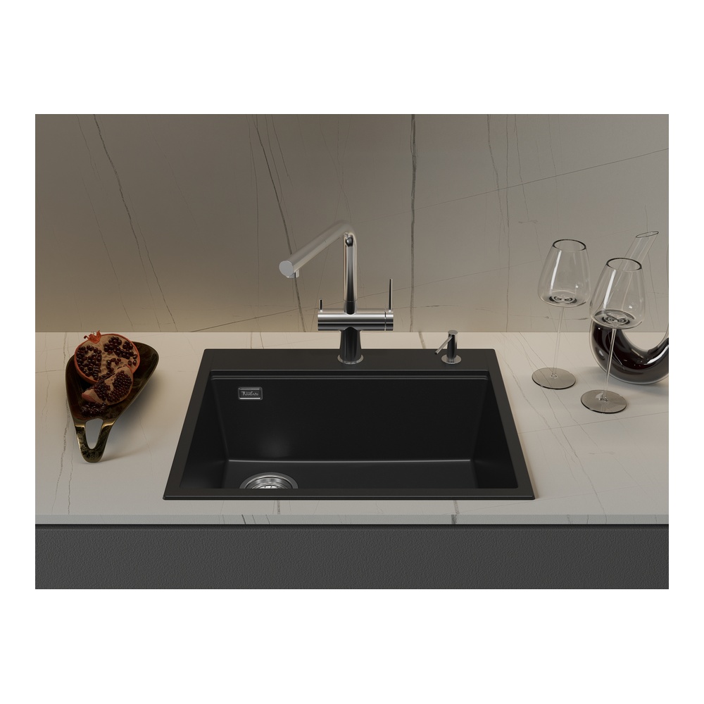 Кухонная мойка Rivelato TESORO TR-605-L, черный. Для кухонного шкафа 60 см. Материал — кварцевый композит. Производство: Италия. Гарантийный срок: 5 лет.