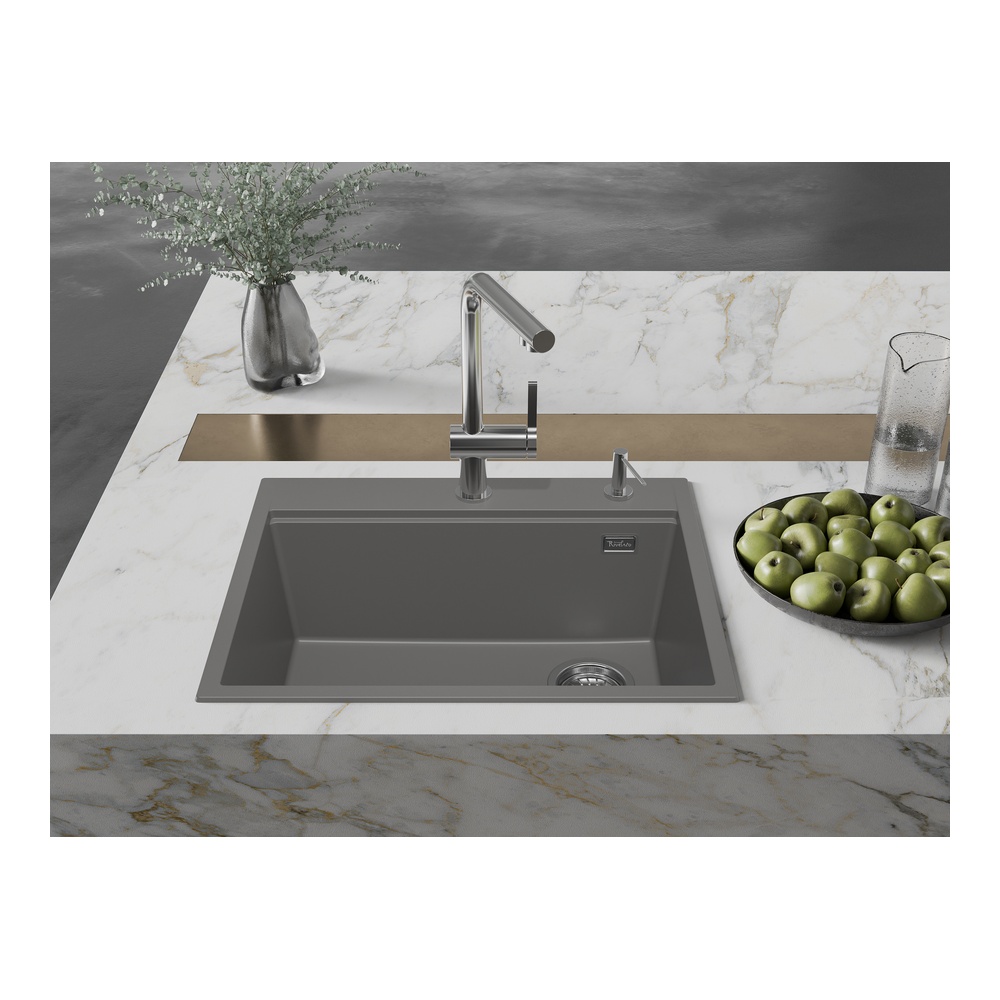 Кухонная мойка Rivelato TESORO TR-605-R, серый металлик. Для кухонного шкафа 60 см. Материал — кварцевый композит. Производство: Италия. Гарантийный срок: 5 лет.