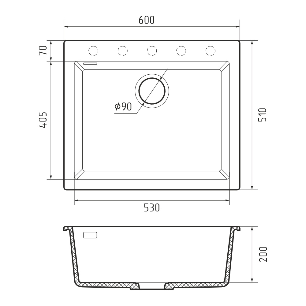 Кухонная мойка Rivelato ZENO ZN-6051, коричневый. Для кухонного шкафа 60 см. Материал — кварцевый композит. Производство: Италия. Гарантийный срок: 5 лет.