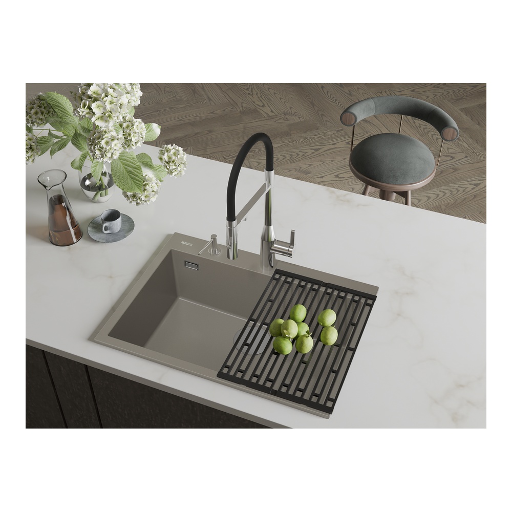 Кухонная мойка Rivelato ZENO ZN-6950, коричневый. Для кухонного шкафа 80 см. Материал — кварцевый композит. Производство: Италия. Гарантийный срок: 5 лет.