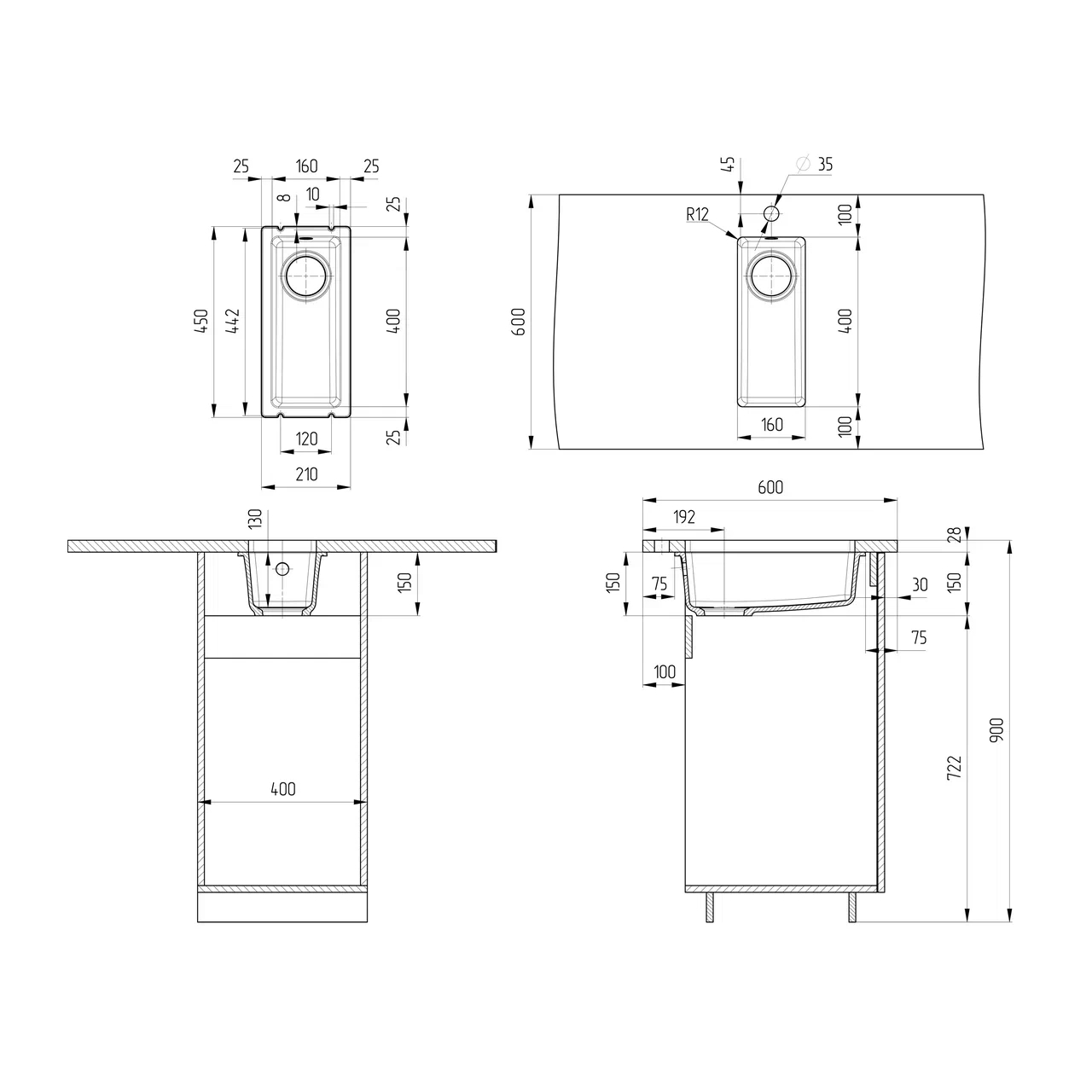 Кухонная мойка ULGRAN Quartz Underground 160 – это односекционая модель подстольного монтажа, изготовленная на современном автоматизированном оборудовании из высококачественных кварцевых композитов по инжекционной технологии (литье под давлением). Кварцевый композит является поистине инновационным материалом в производстве кухонных моек! Он сочетает в себе такие неоспоримые преимущества как повышенная влагостойкость и термостойкость, возможность придать мойке при изготовлении практичный и функциональный дизайн, увеличенное сопротивление внешнему износу, снижение уровня шума при падении струи воды, безусловная гигиеничность и простота в уходе, а также сравнительно малый вес при высокой прочности. Мойка устанавливается в кухонный шкаф шириной от 40 см. Мойка предназначена исключительно для подстольного монтажа и устанавливается в столешницу из искусственного камня или пластика. При монтаже должно применяться специализированное оборудование, поэтому рекомендуем обращаться за помощью к установке к профессионалам. Данная мойка имеет современный минималистичный дизайн, при этом мы рекомендуем сочетать ее с другими моделями моек ULGRAN Quartz Underground для увеличения функциональности. Смеситель устанавливается отдельно на столешницу. В комплектацию входят: сливная арматура серии «Элит» с гофротрубой, технический паспорт и гарантийный талон. Заводская гарантия составляет 7 лет, а срок службы данной мойки, при соблюдении основных правил ухода за ней, составляет более 20 лет.
