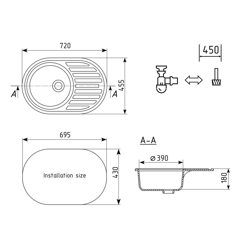 ULGRAN U-107 - односекционная реверсивная кухонная мойка с классической круглой чашей. Данная мойка устанавливается в шкаф шириной от 45 см и является оборачиваемой. В комплектацию входит сливная арматура с гофротрубой, технический паспорт и гарантийный талон. Заводская гарантия составляет 2 года, а срок службы данной мойки, при соблюдении основных правил ухода за ней, составляет более 10 лет.