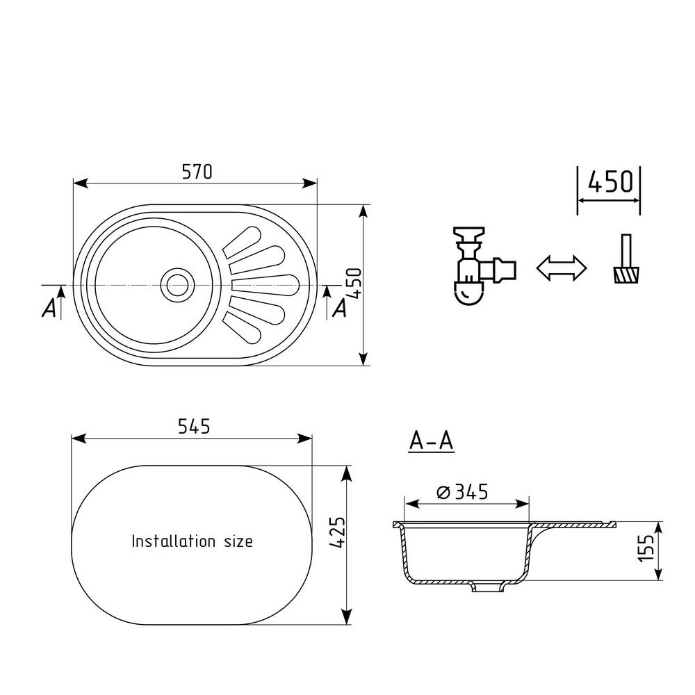 мойка, сливная арматура, корзинчатый вентиль, сифон