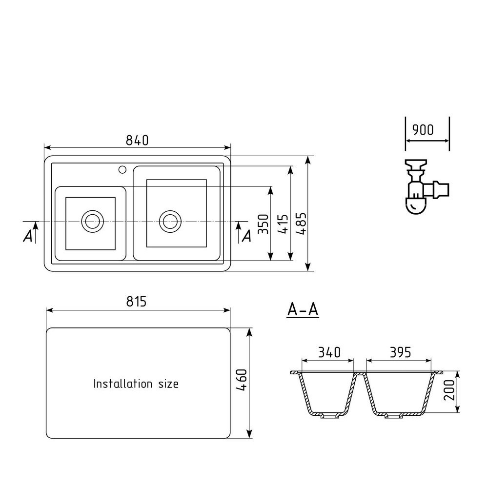 Комплектация мойка, сливная арматура, корзинчатый вентиль, сифон