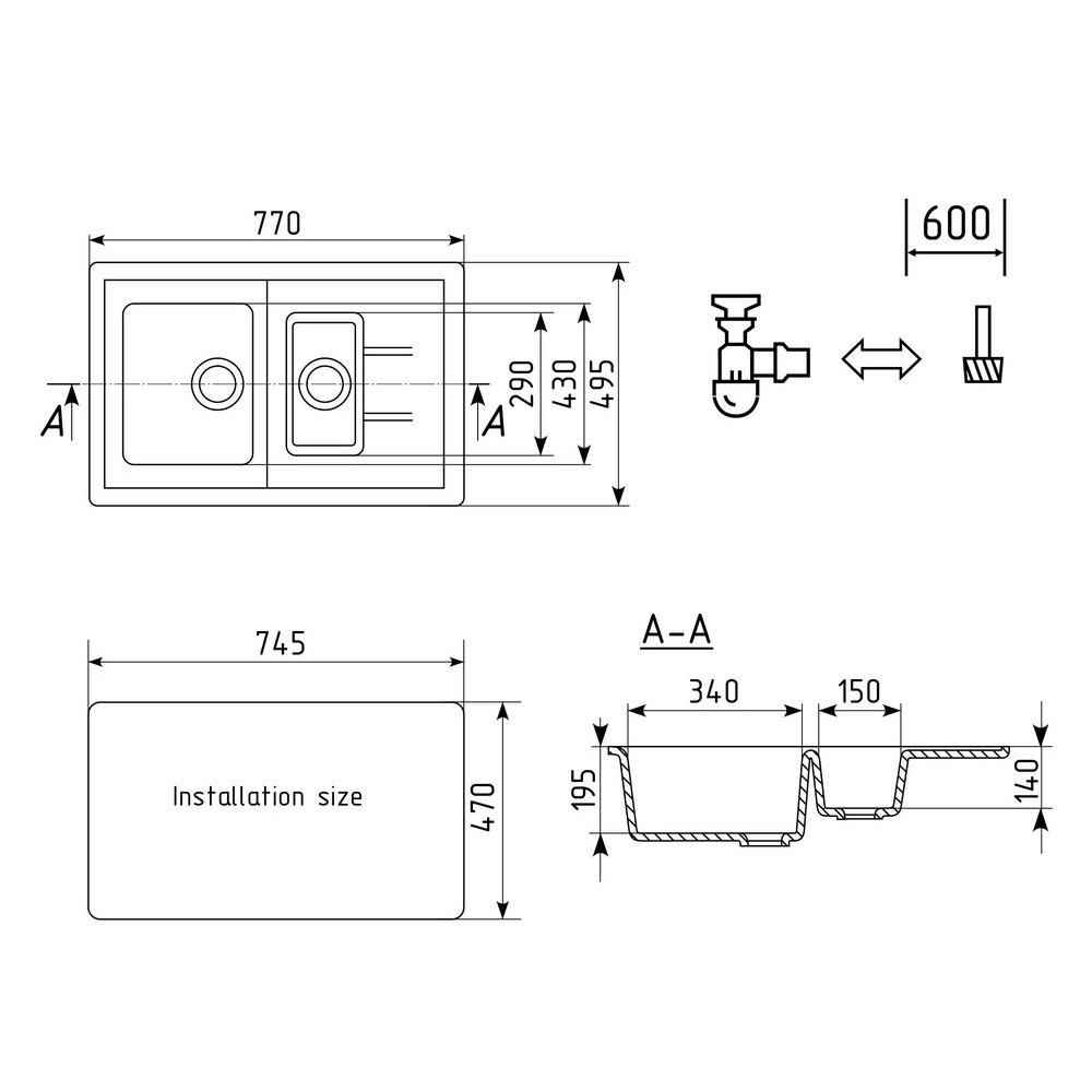 мойка, сливная арматура, корзинчатый вентиль, сифон