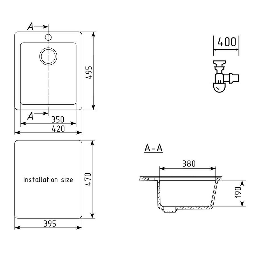 ULGRAN U-404 - односекционная компактная кухонная мойка, с отверстием под смеситель. Данная мойка устанавливается в шкаф шириной от 40 см и подходит для малогабаритной квартиры. В комплектацию входит сливная арматура с гофротрубой, технический паспорт и гарантийный талон. Заводская гарантия составляет 2 года, а срок службы данной мойки, при соблюдении основных правил ухода за ней, составляет более 10 лет.