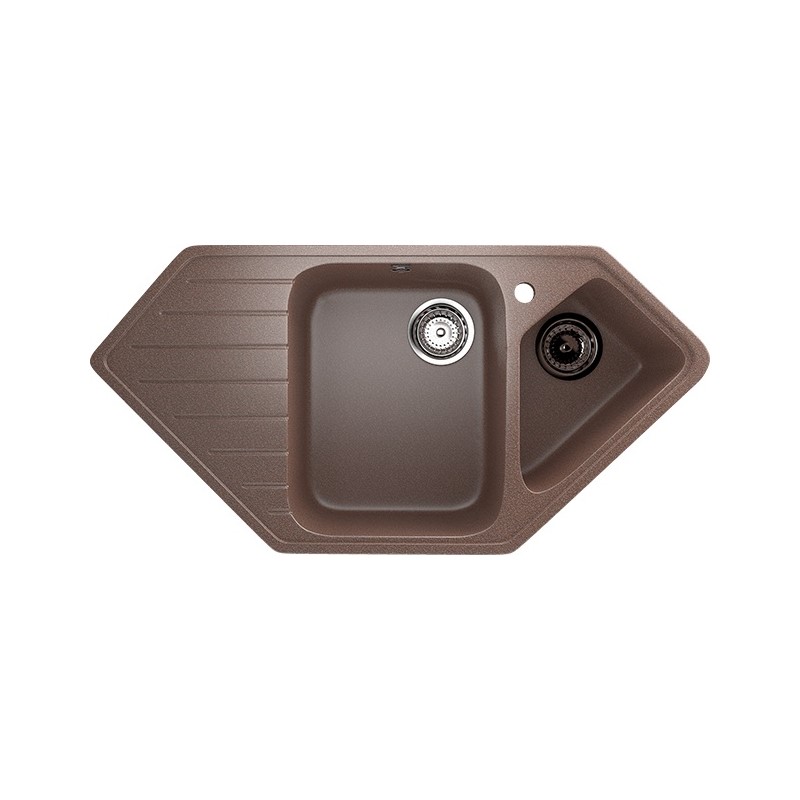 ULGRAN U-409 - двухсекционная угловая кухонная мойка с отверстием под смеситель, с основной чашей и коландером. В комплектацию входит сливная арматура с гофротрубой, технический паспорт и гарантийный талон.  Существует возможность установки дозатора ULGRAN слева от смесителя - доп. отверстие в таком случае потребитель делает самостоятельно с помощью фрезы Форстнера (не входит в комплектацию и приобретается отдельно). Заводская гарантия составляет 2 года, а срок службы данной мойки, при соблюдении основных правил ухода за ней, составляет более 10 лет. Мойки ULGRAN изготавливаются на современном автоматизированном оборудовании по инжекционной технологии (литье под давлением)  и имеют сравнительно малый вес при высокой прочности, что обеспечивает высокий уровень качества и комфортности.  Благодаря сочетанию полиэфирных смол и натуральных мраморных наполнителей полученный композитный материал в 8 раз прочнее натурального мрамора, абсолютно экологичен и безопасен для здоровья человека.  Декоративно-защитное покрытие - гелькоут не имеет микропор и не впитывает никакие бытовые загрязнения, устойчиво к ультрафиолету, имеет антибактериальные свойства и надежно защищает от механических повреждений. Мойки ULGRAN устойчивы к термическим воздействиям и кипятку, имеют отличное шумопоглощение при падении струи воды и увеличенное сопротивление внешнему износу (царапинам, ударам). Мойки просты в уходе и без труда чистятся неабразивными средствами, очень долго сохраняя свой цвет и первозданный внешний вид.
