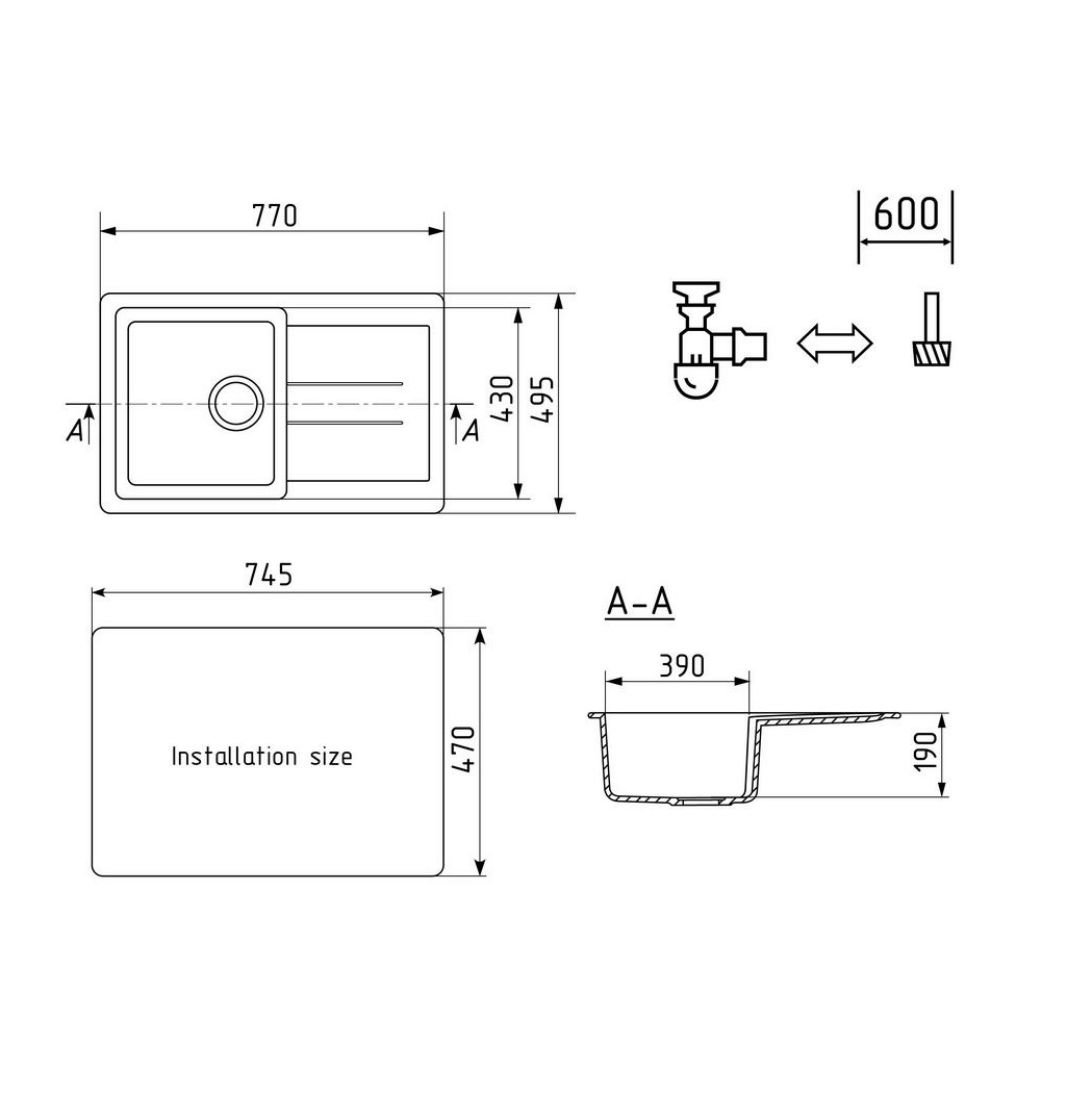 мойка, сливная арматура, корзинчатый вентиль, сифон