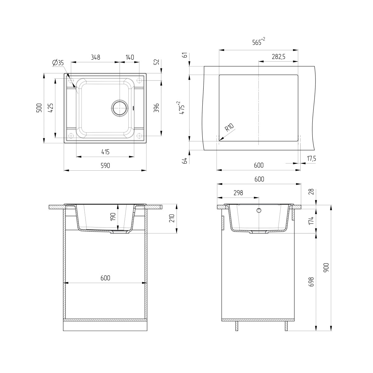 ULGRAN U-604 - односекционная реверсивная кухонная мойка с вместительной чашей. Данная мойка устанавливается в шкаф шириной от 60 см и подходит для малогабаритной квартиры. В комплектацию входит сливная арматура с гофротрубой, технический паспорт и гарантийный талон. Заводская гарантия составляет 2 года, а срок службы данной мойки, при соблюдении основных правил ухода за ней, составляет более 10 лет. Мойки ULGRAN изготавливаются на современном автоматизированном оборудовании по инжекционной технологии (литье под давлением)  и имеют сравнительно малый вес при высокой прочности, что обеспечивает высокий уровень качества и комфортности.  Благодаря сочетанию полиэфирных смол и натуральных мраморных наполнителей полученный композитный материал в 8 раз прочнее натурального мрамора, абсолютно экологичен и безопасен для здоровья человека.  Декоративно-защитное покрытие - гелькоут не имеет микропор и не впитывает никакие бытовые загрязнения, устойчиво к ультрафиолету, имеет антибактериальные свойства и надежно защищает от механических повреждений. Мойки ULGRAN устойчивы к термическим воздействиям и кипятку, имеют отличное шумопоглощение при падении струи воды и увеличенное сопротивление внешнему износу (царапинам, ударам). Мойки просты в уходе и без труда чистятся неабразивными средствами, очень долго сохраняя свой цвет и первозданный внешний вид