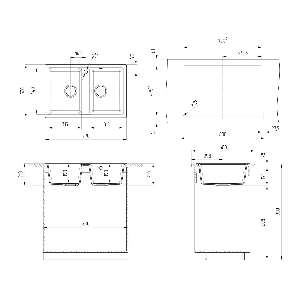 ULGRAN U-608 - двухсекционная кухонная мойка с отверстием под смеситель и двумя вместительными чашами. Данная мойка устанавливается в шкаф шириной от 80 см. В комплектацию входит сливная арматура с гофротрубой, технический паспорт и гарантийный талон. Существует возможность установки дозатора ULGRAN слева от смесителя - доп. отверстие в таком случае потребитель делает самостоятельно с помощью фрезы Форстнера (не входит в комплектацию и приобретается отдельно). Заводская гарантия составляет 2 года, а срок службы данной мойки, при соблюдении основных правил ухода за ней, составляет более 10 лет.