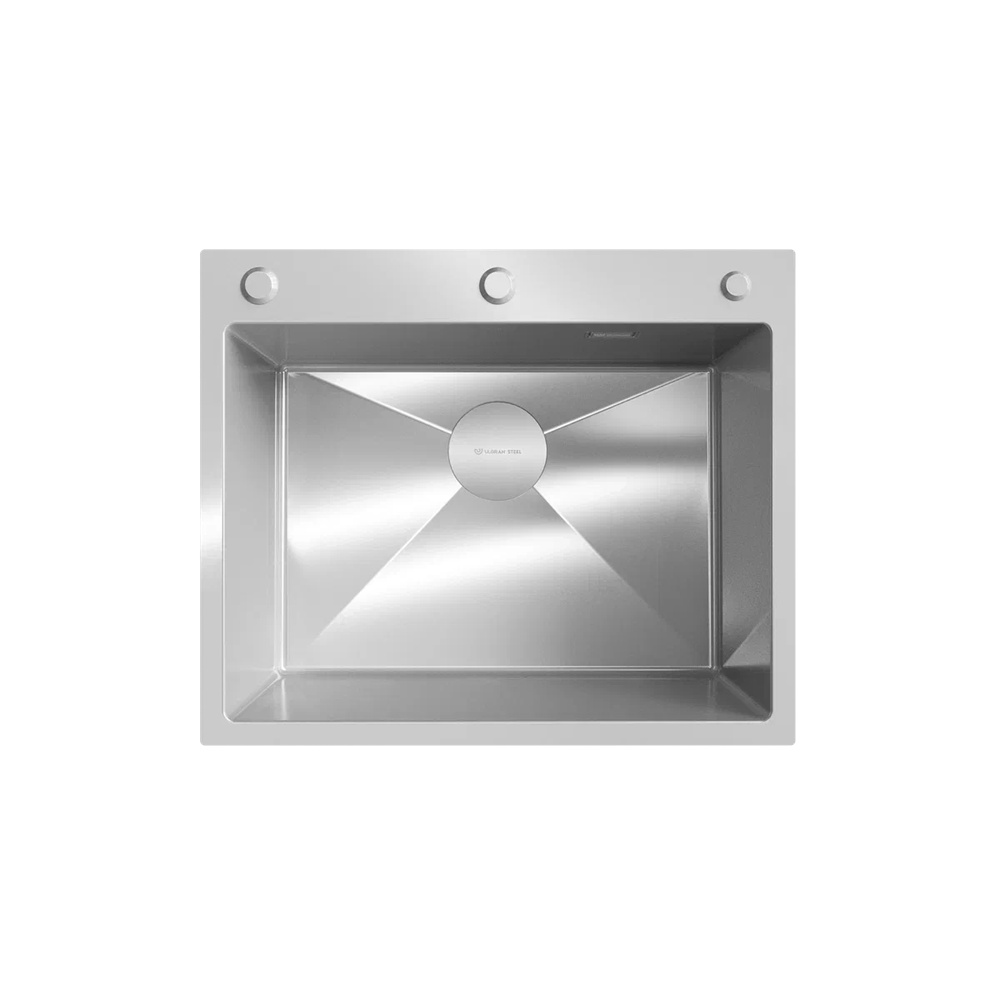 Мойка ULGRAN STEEL 600 Х 500, цвет «брашированная сталь» с тремя готовыми отверстиями под клапан-полуавтомат (35 мм), смеситель (35 мм) и дозатор (28 мм) и с брендированным плоским переливом изготовлена из высококачественной хирургической стали марки AISI 304 и абсолютно безопасна для здоровья человека.