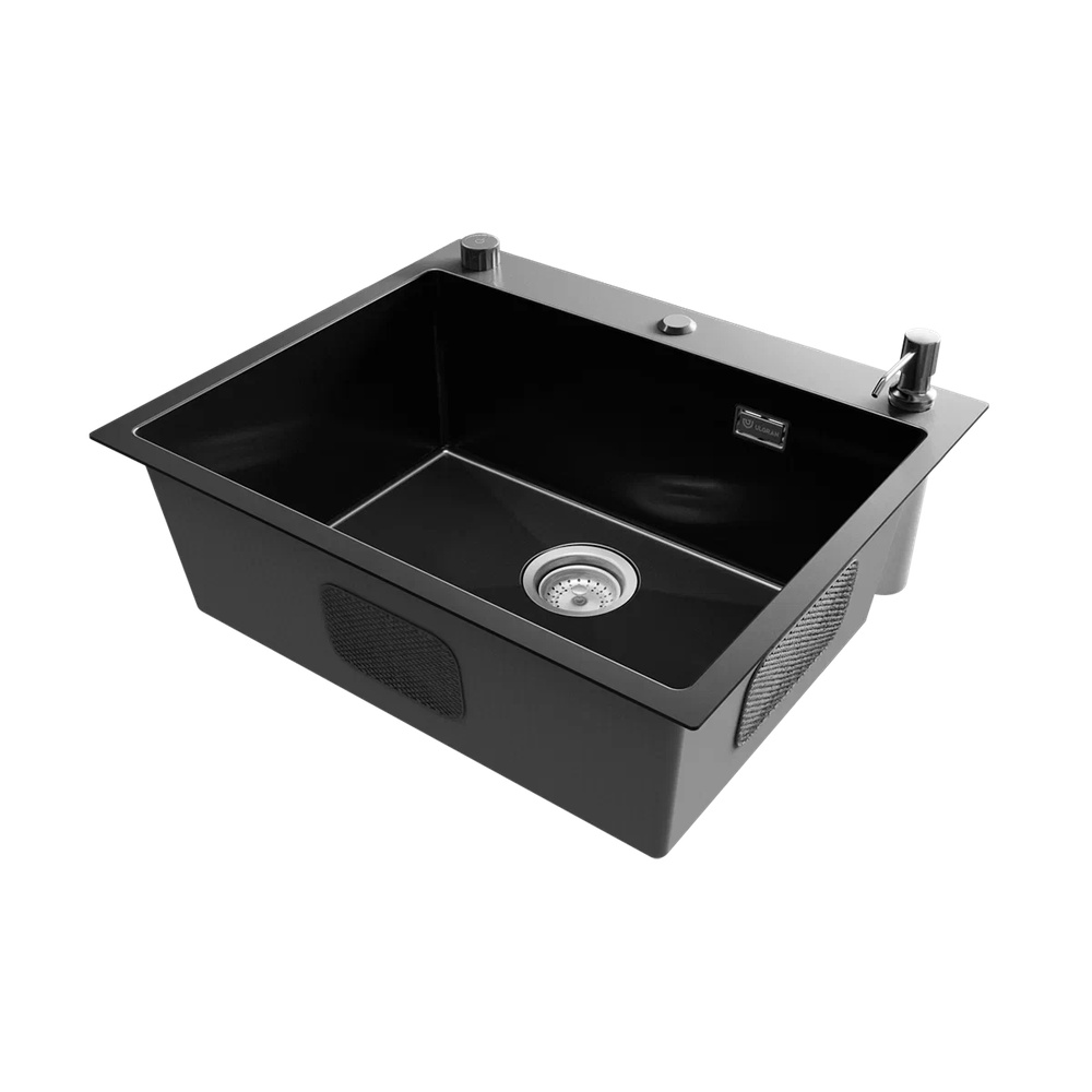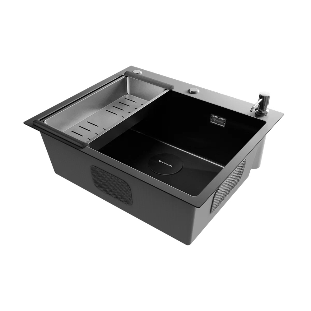 Мойка ULGRAN STEEL 600 Х 500, цвет «вороненая сталь» с тремя готовыми отверстиями под клапан-полуавтомат (35 мм), смеситель (35 мм) и дозатор (28 мм) и с брендированным плоским переливом изготовлена из высококачественной хирургической стали марки AISI 304 и абсолютно безопасна для здоровья человека.
