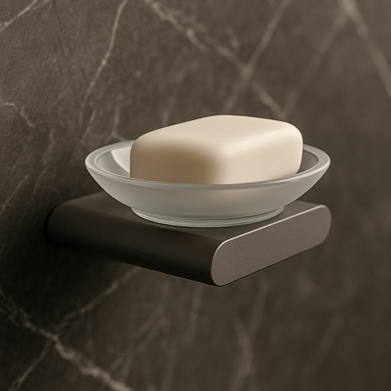 Элегантная подвесная мыльница OVAL в отделке «оружейная сталь». Настенный монтаж делает интерьер аккуратным, а сплав ZAMAK с антиследовым покрытием обеспечивает надежность и удобство ухода.
