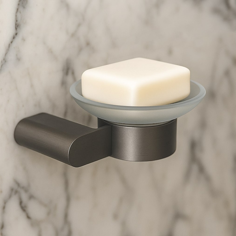 Стильная подвесная мыльница BLISS в отделке «оружейная сталь». Настенный монтаж экономит пространство, корпус из SUS 304 с антиследовым покрытием долговечен и прост в уходе.